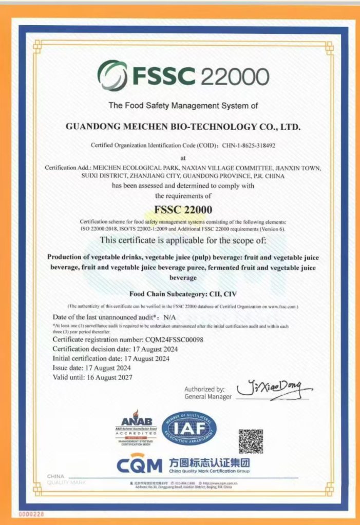 3、增強市場競爭力:在全球食品貿(mào)易中,F(xiàn)SSC 22000 認(rèn)證是被廣泛認(rèn)可的食品安全標(biāo)準(zhǔn)之一。公司獲得該認(rèn)證后,能夠突破貿(mào)易壁壘,拓展國內(nèi)外市場,增加市場份額。